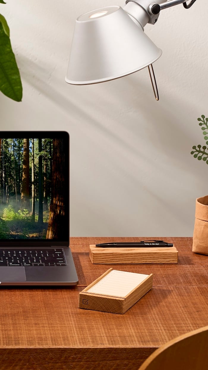 We gebruiken massief hout zoals eiken en noten wat jaren lang gedroogd is. Om de houder af te werken gebruiken we een duurzame matte hardwax voor een natuurlijke uitstraling.
